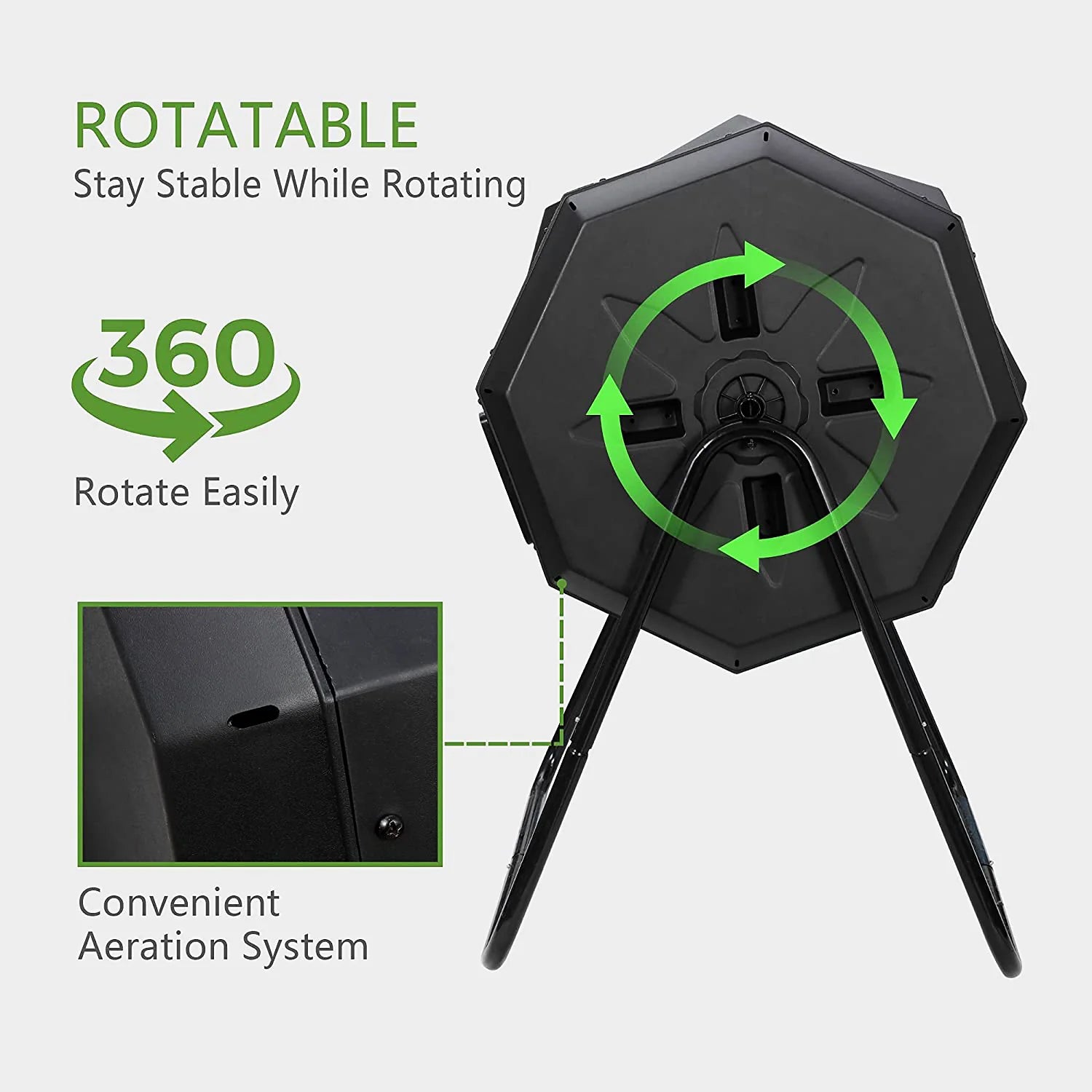 43 Gal. Black Tumbling Composter with Dual Rotating Chamber