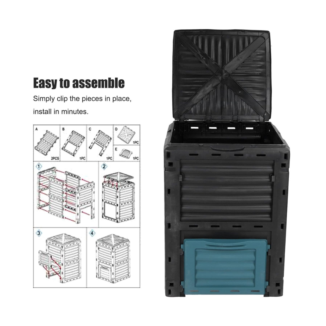 يوفر الغطاء العلوي المفصلي إمكانية فتح وإغلاق مريحة عند إضافة النفايات العضوية، بينما يسمح الباب السفلي باستخراج السماد الجاهز بسهولة دون الحاجة إلى تفريغ كامل المحتوى. مما يجعل عملية الاستخدام عملية وسلسة حتى للمستخدمين غير المتخصصين.