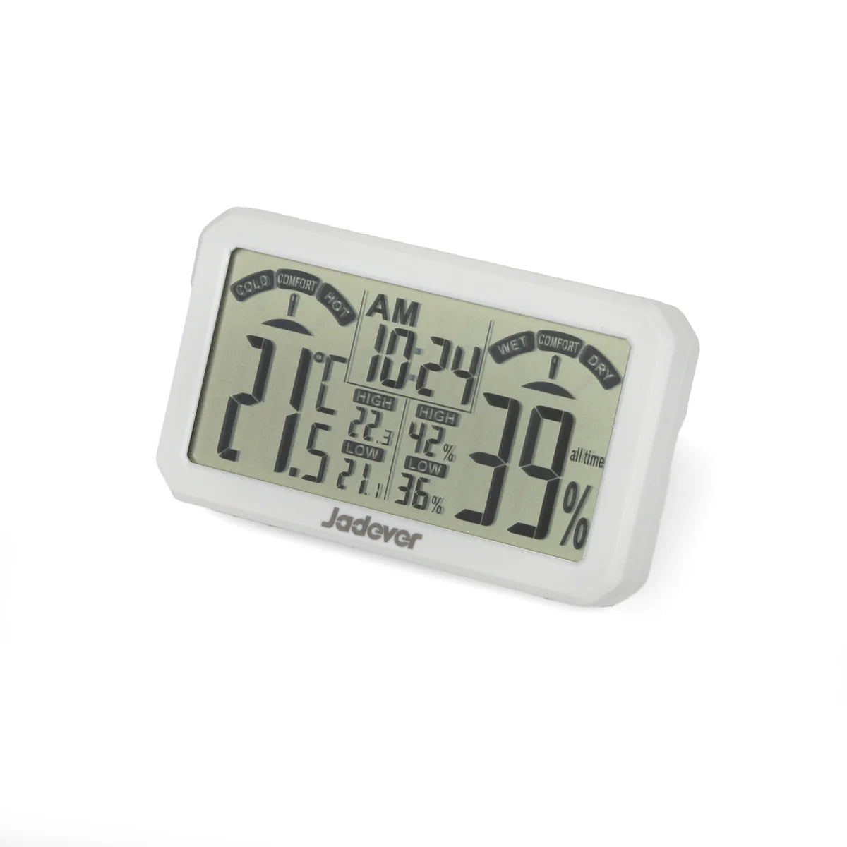 احصل على قراءة دقيقة وفورية لدرجة الحرارة والرطوبة مع جهاز JADEVER الرقمي. يتميز بشاشة LCD واضحة وسهلة القراءة، مما يجعله مثاليًا للمنازل، المكاتب، الغرف، أو حتى البيوت البلاستيكية.
